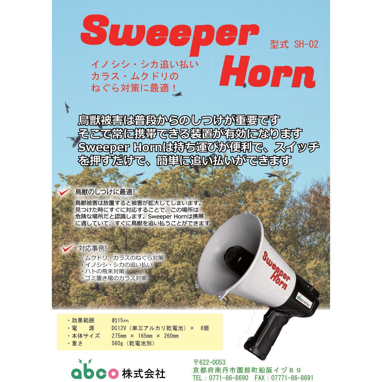 装置持手にあるスイッチを押すだけで追い払い効果のある音が発音します。